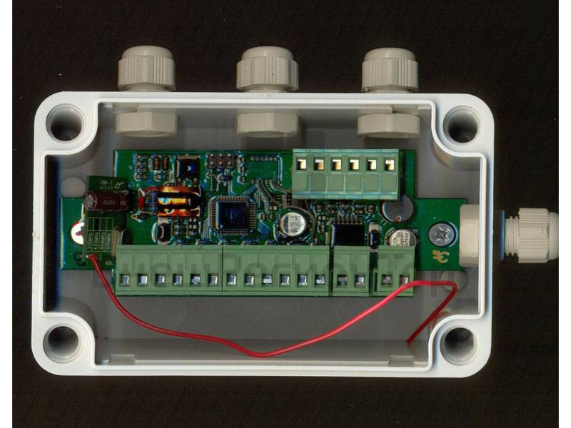 Влагозащищенный контроллер управления светофорами SC2014 в защитном корпусе с встроенной электронной защитой от перебоев во вторичных цепях и контролем переполюсовки питающего источника с поддержкой беспроводных каналов связи управления (инфракрасный канал, радиоканал связи 433-868 МГц). Класс защиты IP-65, напряжение питания 12-24 В, максимальная выходная нагрузка – 180 Вт.