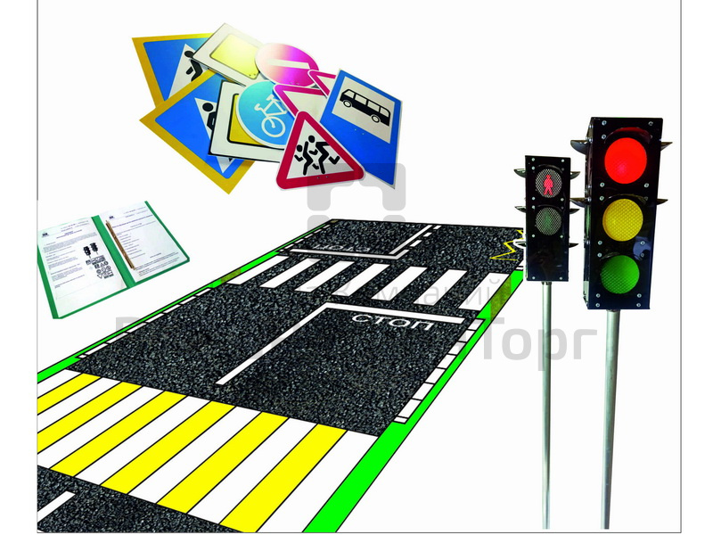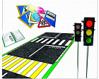 Комплектация включает ключевые элементы, необходимые для изучения базовых понятий, таких как светофорные сигналы, дорожные знаки и разметка.