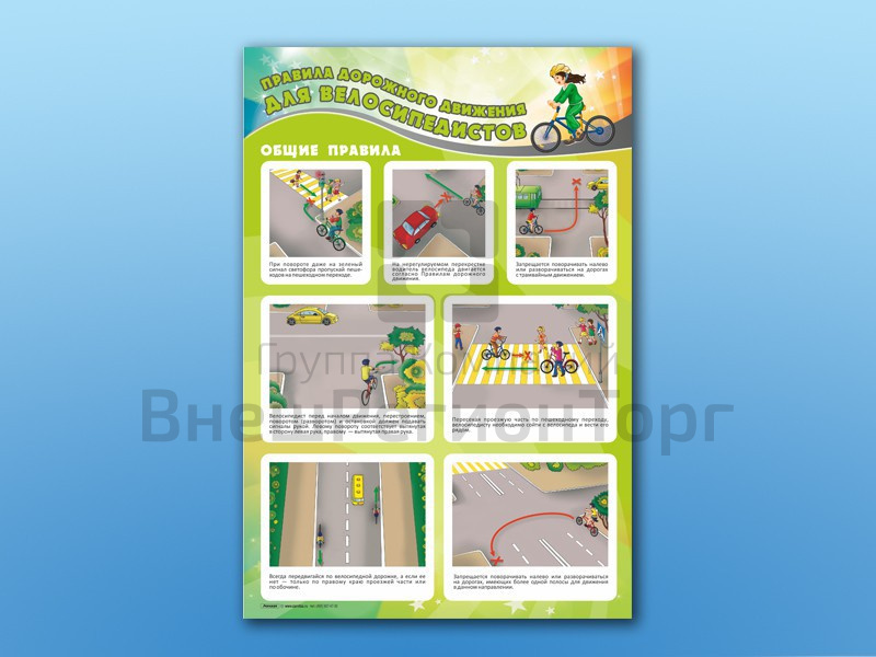Подробное описание Стенд по ПДД Правила дорожного движения для велосипедистов, 69х100 см