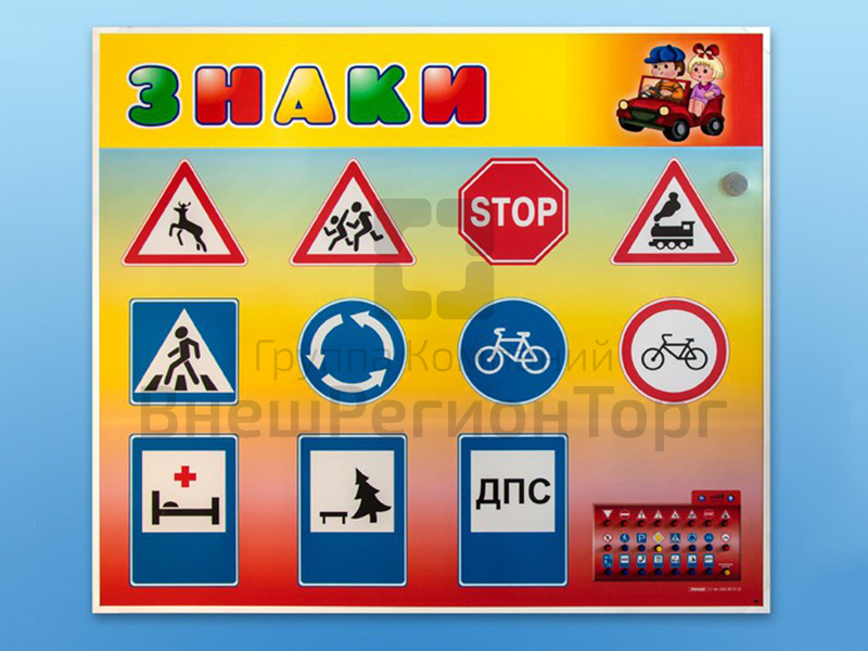 Базовый комплект светового оборудования представляет собой набор из двух информационных панелей, на которых размещено 23 световых элемента в виде наиболее распространенных дорожных знаков.