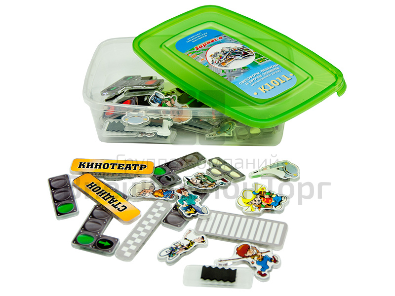 Комплект тематических магнитов представляет собой набор из магнитов в виде дорожных знаков и объектов городской социальной инфраструктуры.