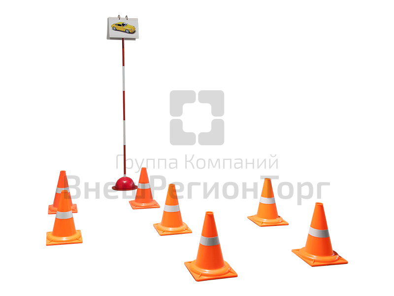 Препятствие представляет собой имитационный участок дорожки с полосами для движения, начало и конец которых обозначены конусами. В начале препятствия слева по ходу движения располагается стойка-планшет на утяжеленном основании с перекидными цветными иллюстрациями.