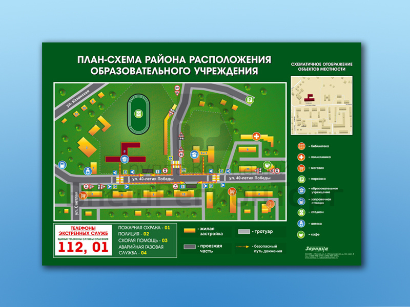 Подробное описание Стенд по ПДД План-схема района расположения образовательной организации, 100х70 см