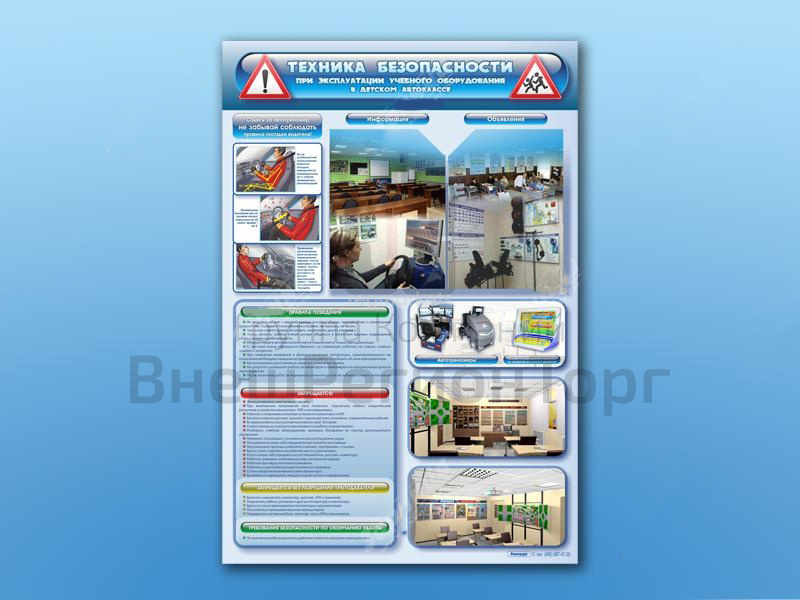 Подробное описание Стенд по ПДД Техника безопасности при эксплуатации учебного оборудования в автоклассе, 69х100 см