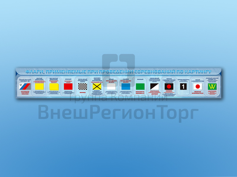 Стенд-лента представляет собой информационную панель, на которой изображены флаги, применяемые при проведении соревнований по картингу, и размещены сведения о них.