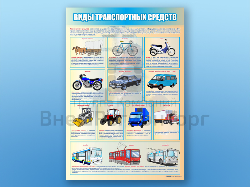 Стенд представляет собой информационную панель, на которой размещены сведения о видах транспортных средств.