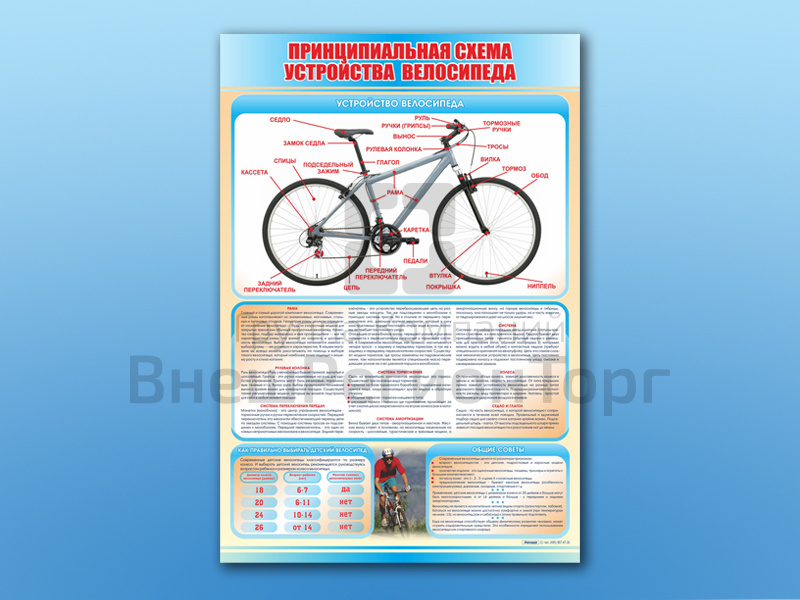 Подробное описание Стенд по ПДД Принципиальная схема устройства велосипеда, 69х100 см