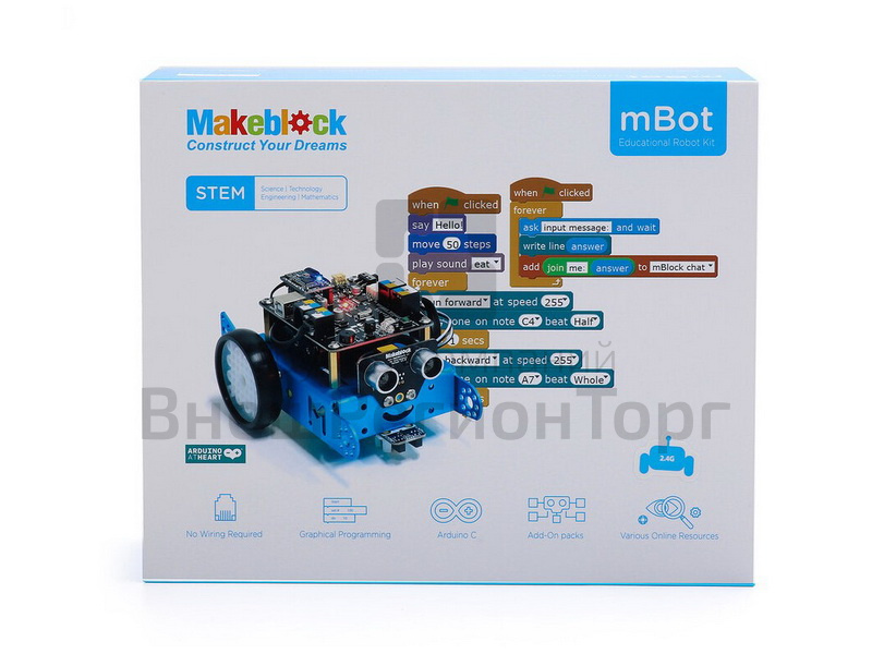 Базовый робототехнический набор mBot - это обучающий набор, который подойдет как для начинающих робототехников, так и для тех, кто уже познакомился с миром роботов. Легкий в сборке робот работает в паре с графической программой mBlock, основанной на Scratch, что позволяет сразу окунуться в мир программирования, электроники и робототехники.