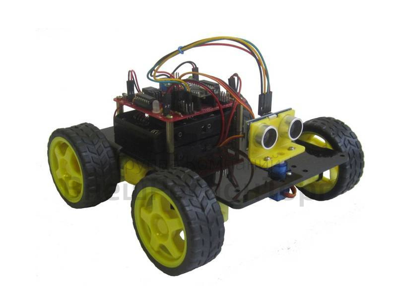 Механическая часть конструктора-робота построена на базе 4-моторного шасси и включает в себя несущую пластину длиной 170 мм и шириной 120 мм, 4 электромотора с редуктором и пластмассовыми колесами. На колеса одеты полиуретановые шины. Управление роботомосуществляется блоком управления R-5 с контроллером Arduino nano.