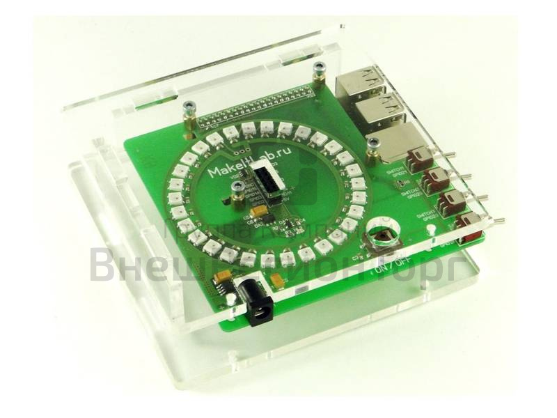 Компьютер переставляет собой Raspberry Pi в корпусе со специальным шилдом. На шилде имеются: