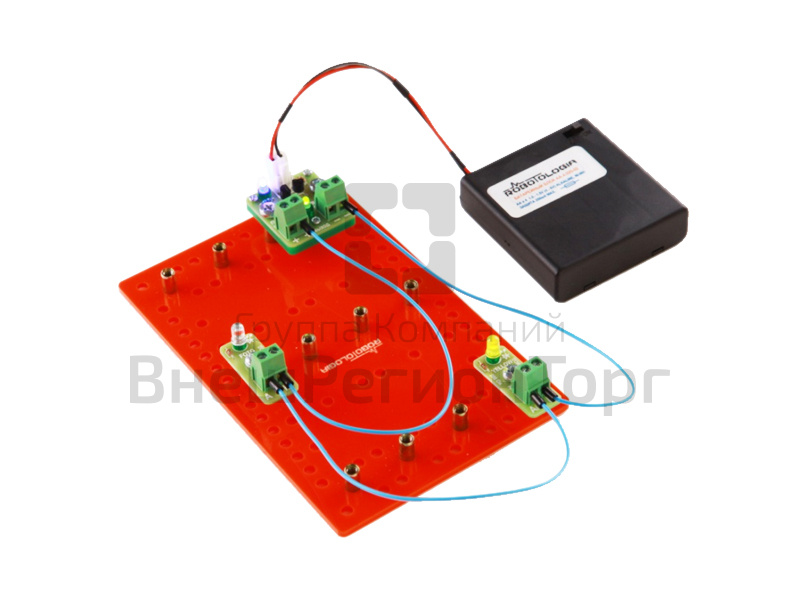 В составе набора - радиоэлементы, обладающие высокой степенью защиты, которые абсолютно безопасны для использования детьми. Каждый элемент установлен на небольшую пластину, имитирующую печатную плату. У радиоэлементов конструктора имеются настоящие клеммники, с помощью которых происходит соединение проводниками (проводами) элементов в схему.