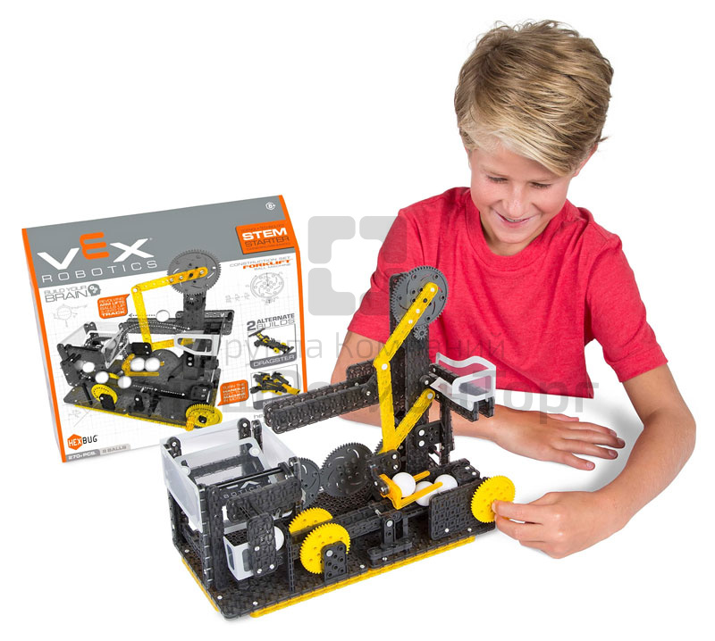 VEX by HEXBUG специализируется на вдохновении будущих поколений инженеров робототехники за счет радостного возбуждения и практического обучения с наборами конструкторов по направлениям наука, технология, инжиниринг и математика (STEM), например, этой машины вилочного подъемника шаров VEX by HEXBUG Шариковая машина. Эта машина дает важные знания по кинематике, тягам, возвратно-поступательному движению, синхронизации и последствия этих принципов для всей системы.