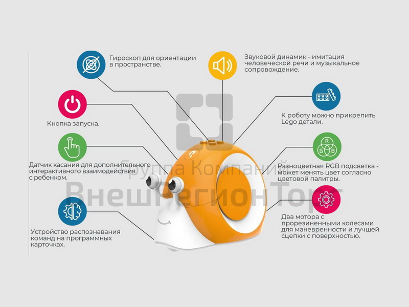 Программируемый робот-улитка, предназначенный для обучения детей от 4 до 8 лет по принципу STEAM образования.