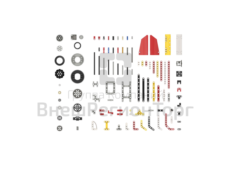 В комплект входят 777 деталей, среди которых шестерни, колеса, балки и крепежные детали.