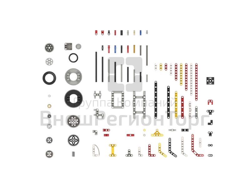 В комплект входят 320 деталей, среди которых шестерни, колеса, балки и крепежные детали.