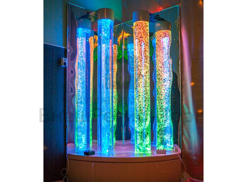 Мягкое основание в виде тумбы, на котором можно сидеть, придаёт колонне устойчивость. Зеркала устанавливаются в углу и служат для усиления оптического эффекта.