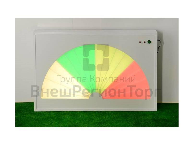 Интерактивная светозвуковая панель "Веер" предназначена для интерактивных игр, зрительной стимуляции, изучения цветов, рекомендуется для детей с ослабленным зрением. Принцип работы панели основан на изменении изображения в зависимости от уровня громкости звуков, издаваемых вокруг. Чем выше уровень звука, тем большее количество ячеек загорается одновременно.