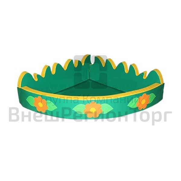 Подходит для игр маленьких детей, так как такие игры развивают пространственное восприятие и представление, тактильную чувствительность.Состоит из двух бортиков фигурной формы, одного бортика сектора окружности, дно - искуственная кожа. Особенность модели в том, что боковые бортики сухого бассейна фигурные.