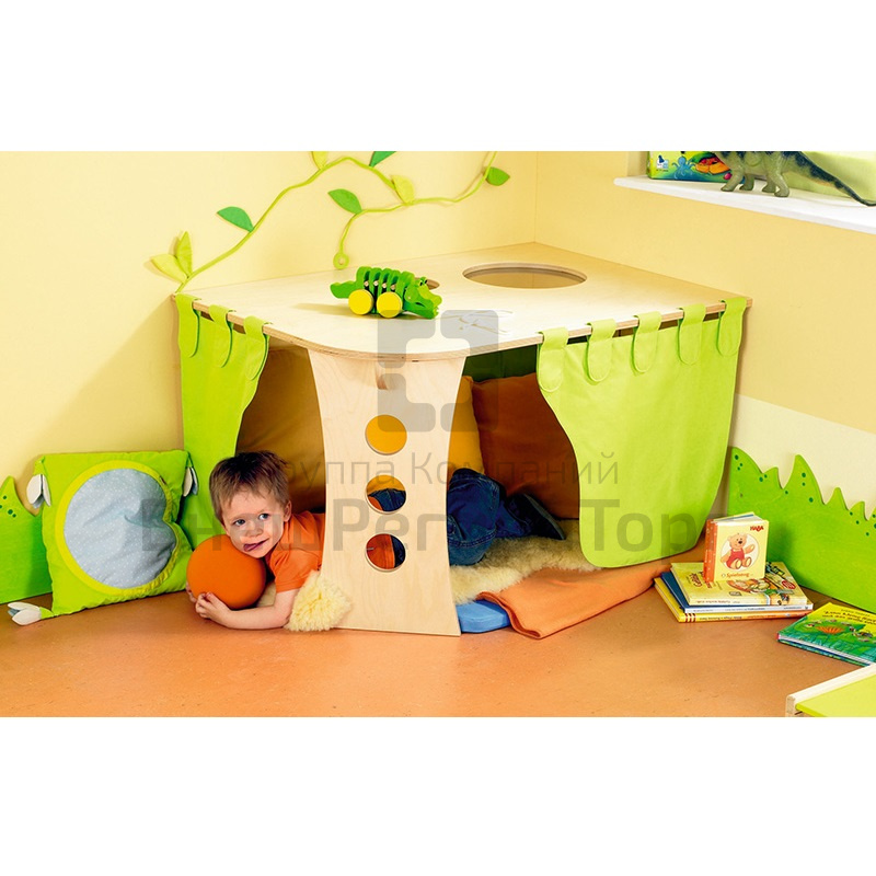 "Уютное местечко" используется для обустройства детских игровых или сенсорных комнат. Это угловой домик, внутри которого легко размещаются мягкие модули. Подходит для малышей от трех лет. Изделие заинтересует каждого ребенка тем, что он сможет там отдыхать, играть и хранить игрушки.