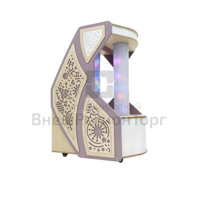 Универсальное оборудование для оснащения сенсорных комнат и кабинетов детских психологов. Мобильный комплекс включает: световую колонну, фонтан из фибероптического волокна, шестигранное «Зеркало бесконечности», сенсорные панели, нейротренажёры, проектор звёздного неба и встроенную музыкальную систему.
