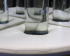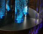 Основание и верх сенсорного уголка обрамлены безопасными зеркальными поверхностями. С верхней части уголка свисают фибероптические нити с точечным свечением по длине. Сверху домика из свисающих нитей - зеркало. Если посмотреть вверх, можно увидеть в нем себя. В нижней части колонны имеется кран для слива воды.