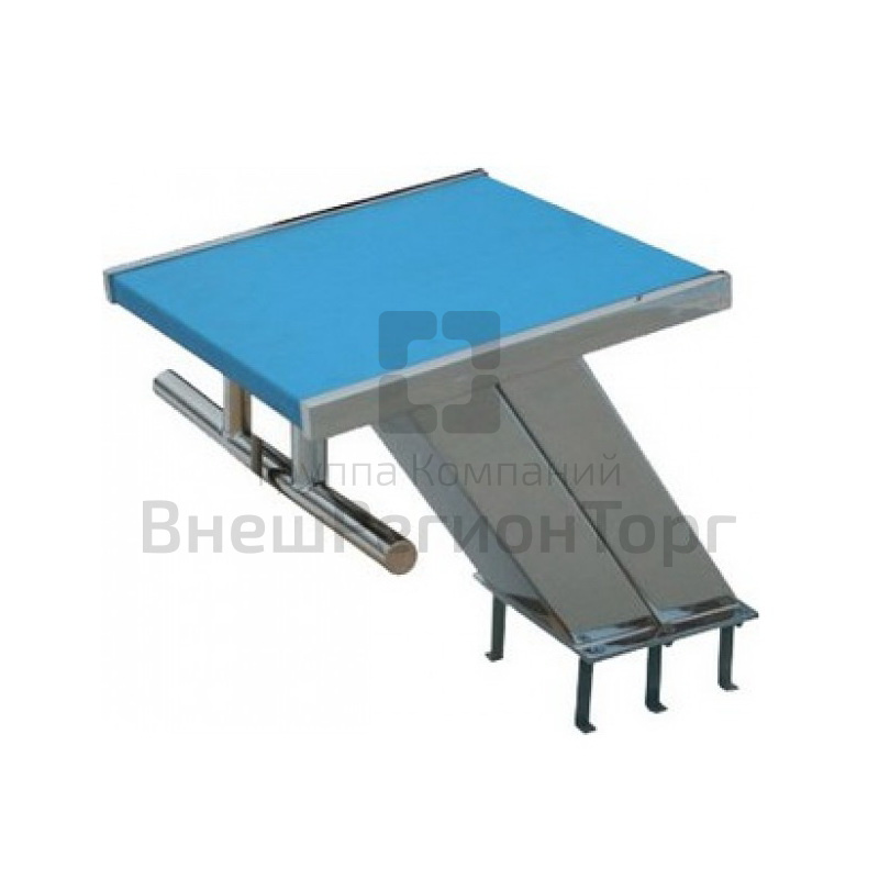 Нержавеющая сталь AISI-304. Стартовая платформа 50х50 см с нескользящим покрытием. Высота тумбы 40 см. Предназначена для установки в скиммерном бассейне. В комплекте с анкерным креплением.