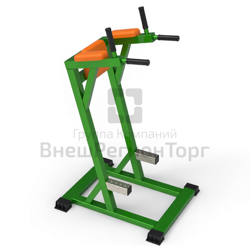 Брусья изготовлены из стальных труб квадратного сечения. Спинка и подлокотники изготовлены из мягкого и упругого материала, покрыты винилискожей.