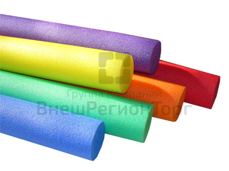 Детский нудл (нудлс, гибкая аква-палка). 6 вариантов цвета: красный, синий, зеленый, оранжевый, желтый, фиолетовый. Длина 80 см (+/- 30 мм), диаметр 7 cм (+/- 3 мм), плотность 23-26 кг/м3. Применяется для обучения плаванию и для игр в бассейне и на суше.