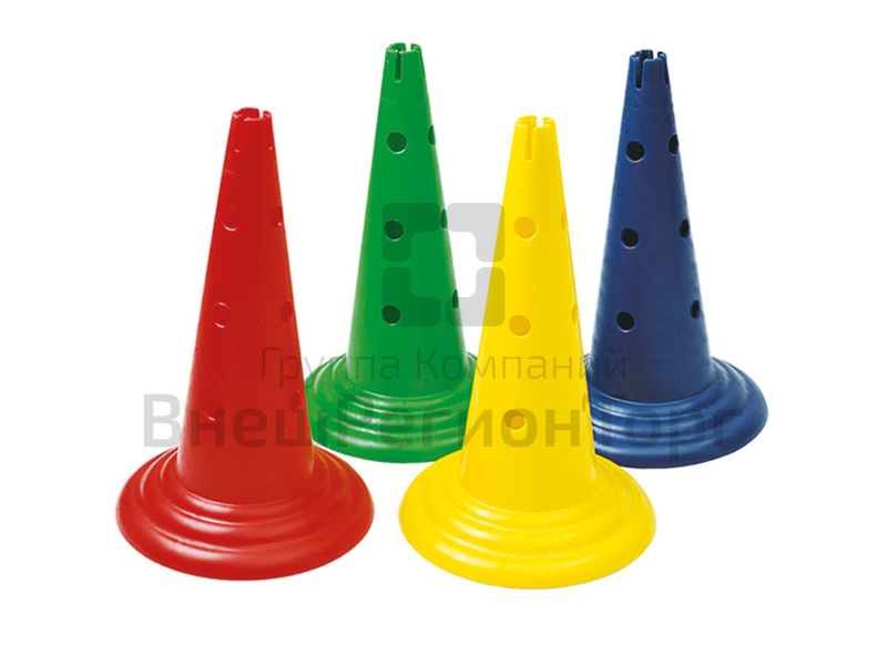 Конус высотой 50 см (12 отверстий) подходит для проведения спортивных занятий, соревнований, эстафет, активных игр. Применяется для обозначения границ. В конусе имеются отверстия для палок диаметром 2, 5 см.