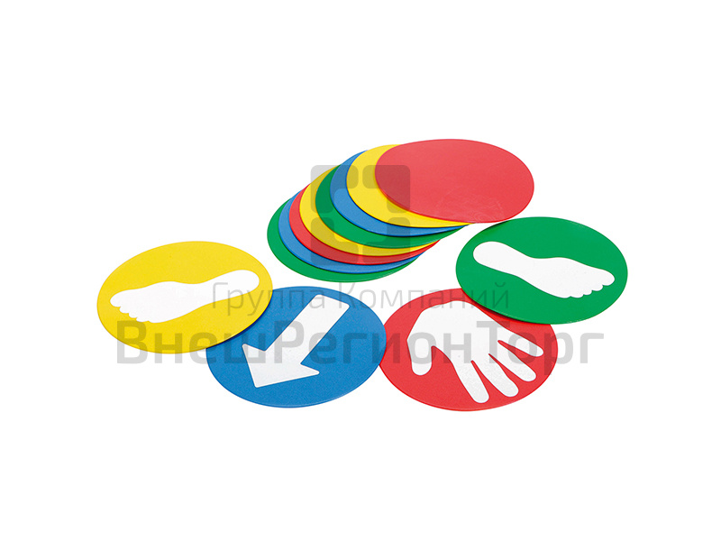 Резиновые метки помогут расставить детей по залу, задать направление движения полосы препятствий, выучить четыре основных цвета, организовать игры и эстафеты. Так же способствуют развитию внимания, координации, ориентировки в пространстве.