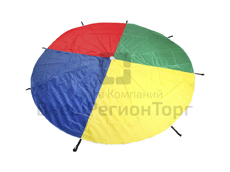 Подробное описание Парашют для эстафет, диаметр 3 м, 4 сектора (4 цвета, 8 ручек)