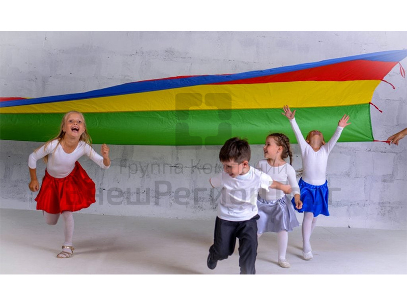 Цветной парашют подходит для детской коллективной деятельности: игр, развивающих заданий. Педагоги могут использвать его в качестве реквизита для занятий по физкультуре, развитию речи и цветового восприятия.