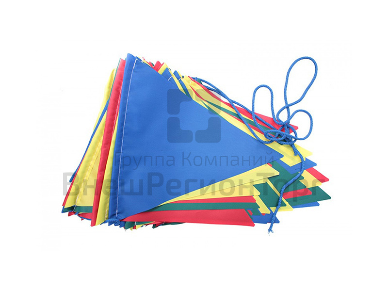Флажки на шнуре могут использоваться в спортивных и сюжетно-ролевых играх. Флажная лента изготовлена из синтетических тканей разнообразных расцветок.