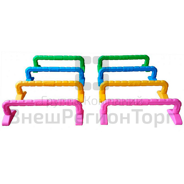 Элементы выполнены в разных цветах - отличная полоса препятствий для детского сада или начальной школы.