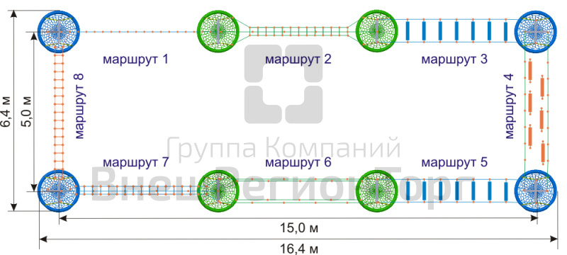 Готовая комплектация комплекса "Тарзан" на стойках с гнездами.