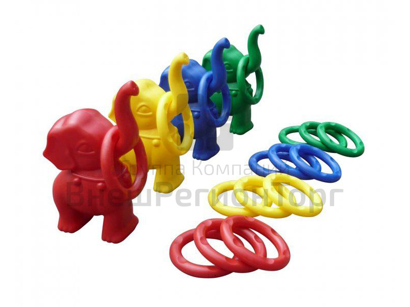 В комплекте 4 слоника, на хобот которого нужно набрасывать колечки.
