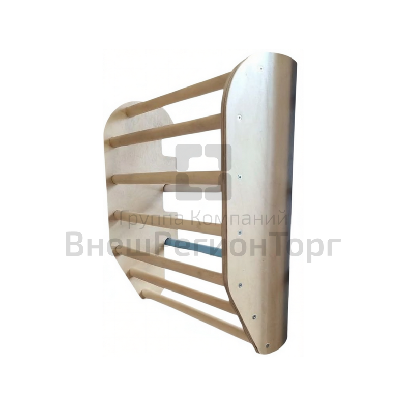Боковины выполнены из березовой влагостойкой фанеры толщиной 18мм. В своем составе боковины имеют специальные пазы для фиксации на шведской стенке Перекладины тренажера выполнены из твердых сортов древесины, диаметр 32мм. Боковины и перекладины покрыты лаком на водной основе.