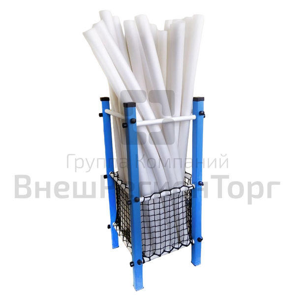 Небольшая стойка для хранения нудлов (нудсов, гибких палок) в бассейне. Позволяет компактно разместить до 30 нудлов диаметром 65-70 мм. Нижняя часть подставки с сеткой расширяет ее функциональные возможности для складирования мелкого инвентаря.