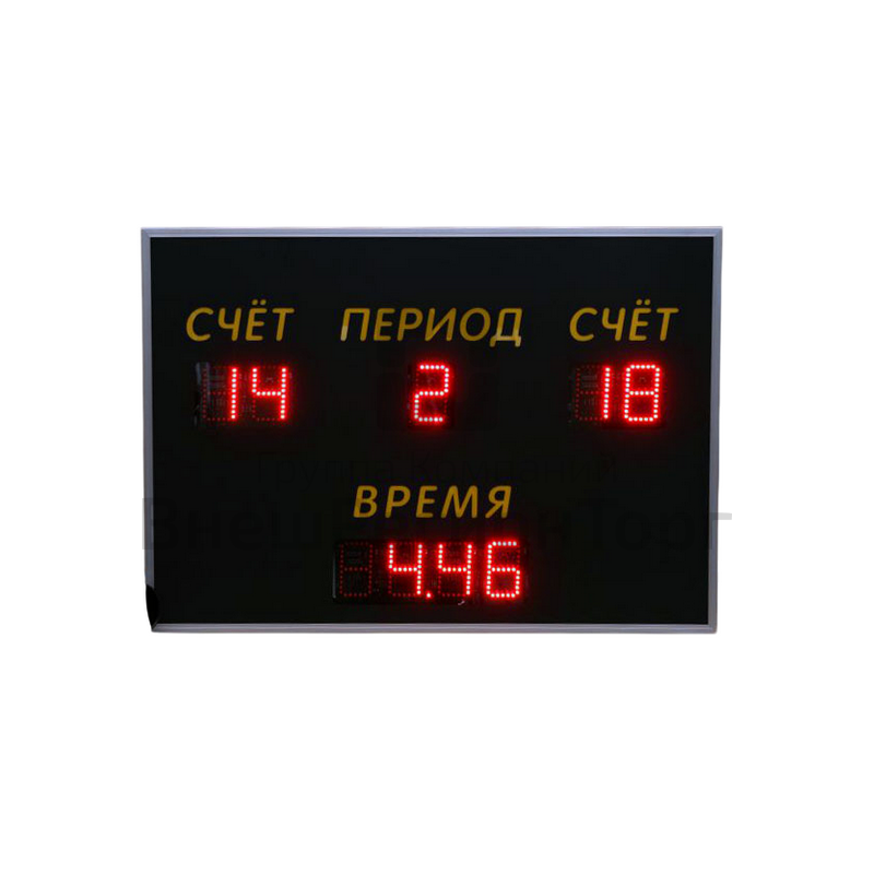 Предназначено для отображения информации при проведении соревнований по игровым видам спорта баскетболу, волейболу, гандболу, мини-футболу. Управление: радиопульт, дальность действия до 50 м. Габаритные размеры 1000 х 750 х 44 мм. Масса, не более* 15 кг. Напряжение питания 220 В. Потребляемая мощность, не более 50 Вт. Элемент индикации светодиод - 5 мм. Цвет свечения красный \ белый \ зеленый. Яркость свечения 800 мКд. Высота символов: Счет 100 мм.Таймер 100 мм. Период 100 мм.