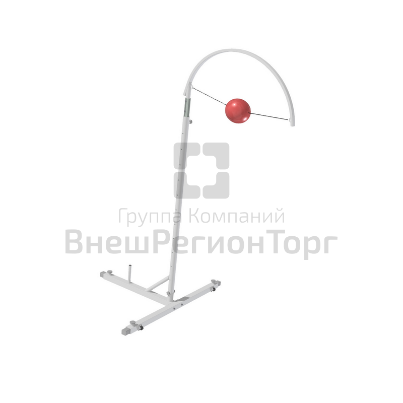 Стойка волейбольная тренировочная представляет сборную конструкцию, состоящую из основания, стойки. В стойку входит регулируемая по высоте дуга. Высота дуги фиксируется с помощью скобы, зазор выбирается фиксатором. Стойка передвигается на двух колесах. При использовании для устойчивости конструкции опору нагрузить противовесом общей массой 25-35 кг, для чего на конструкции предусмотрена грузовая втулка диам. 27мм. Основание стойки изготовлено из профильной трубы 60х60мм, стойка из трубы диам. 57мм, дуга профиль 40х25мм. Окрашена порошковым покрытием. Мяч в комплект не входит.