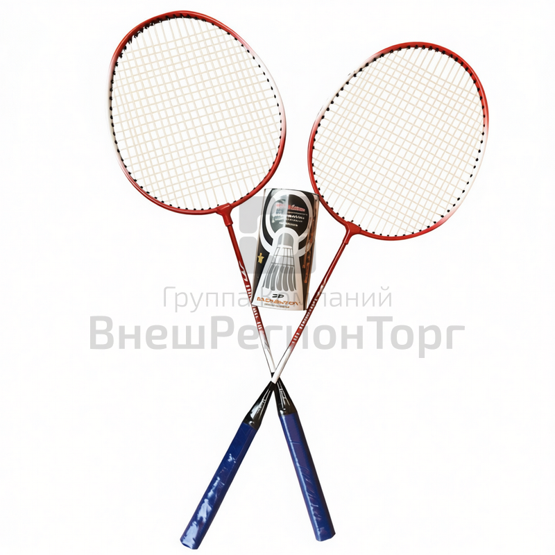 Набор для бадминтона, 2 ракетки и 3 волана в чехле на молнии. Ракетки с широким алюминиевым ободом и стальной закалённой ручкой.