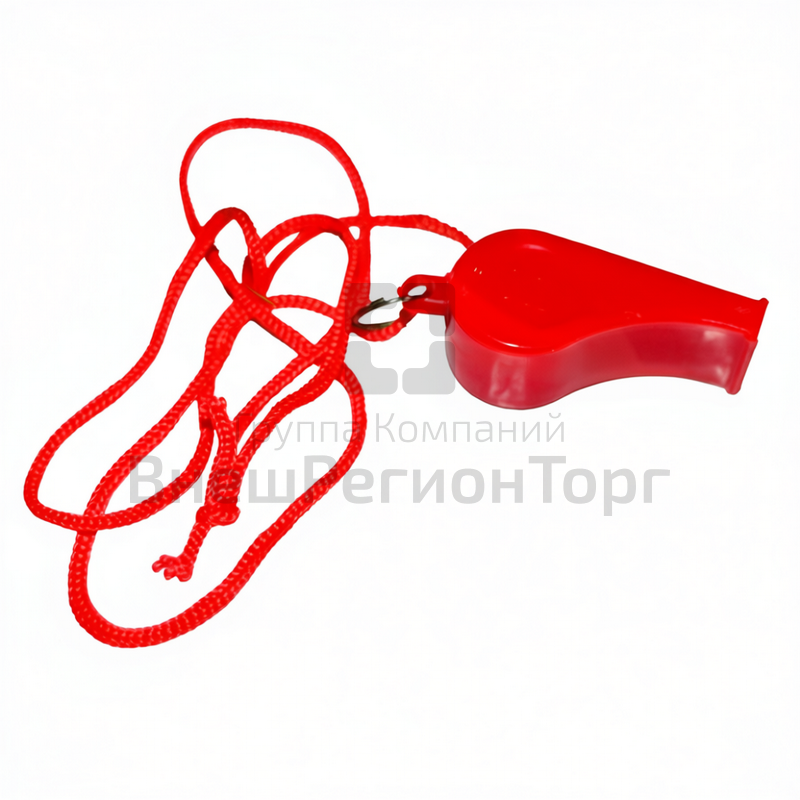 Свисток пластиковый с пластиковым шариком. Благодаря специальному шнурку, который является частью комплекта, легко вешается на шею.