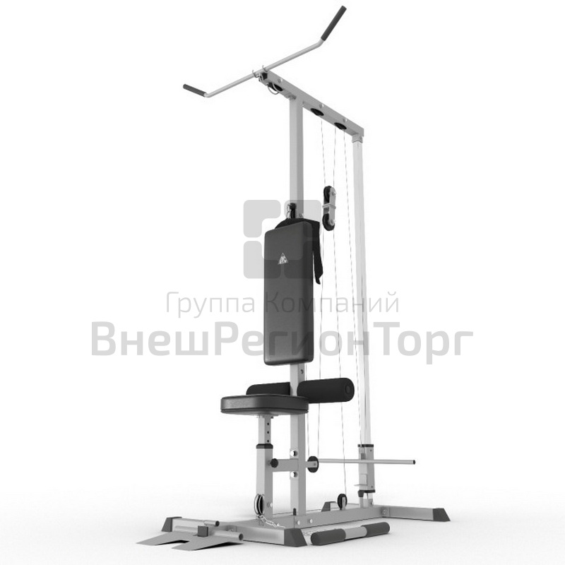 Тренажер на свободных весах (Lat Mashine) для проработки мышц спины и плечевого пояса. Объединяет верхнюю и горизонатльную тяги. Сиденье тренажера и валики для ног имеет регулировку по высоте, позволяют подобрать удобную посадкуи надежно фиксируют тело атлета во время занятий.