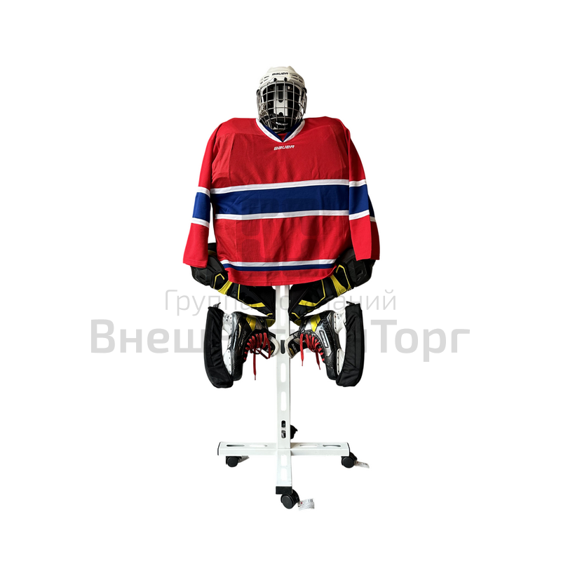 Напольная стойка-вешалка для сушки хоккейной формы вмещает полный комплект экипировки от коньков до шлема. Стальная окрашенная конструкция, простая в сборке и эксплуатации.