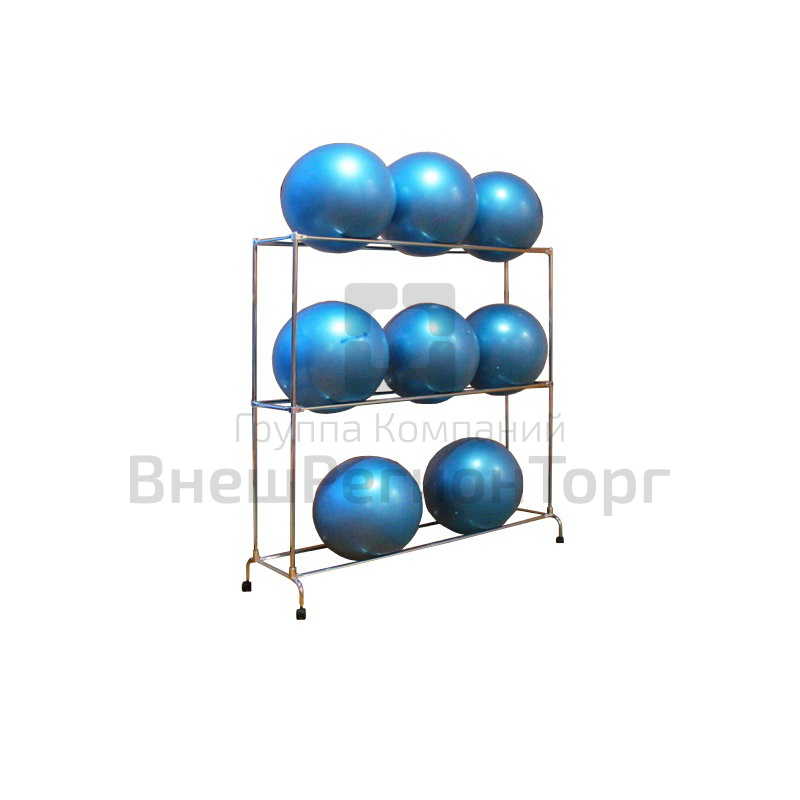 Стеллаж предназначен для хранения 9 гимнастических мячей. Стеллаж разборный, изготовлен из хромированной трубы диаметром 25 мм. Для удобства перемещения снабжен колесами.