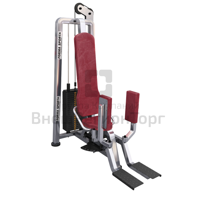 Это оборудование предназначено для работы как над отводящими мышцами бедер (абдукторами), так и над приводящими (аддукторами). Переключение между режимами легко производится при помощи фиксатора пружинного типа. Грузоблочная система обеспечивает тихий и плавный ход при сведении и разведении ног.