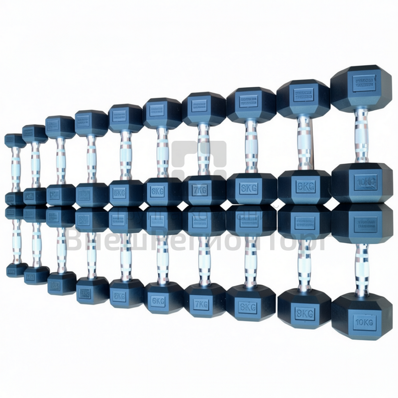 В этом наборе всего 20 гантелей. По две гантели от 1 до 10 кг.