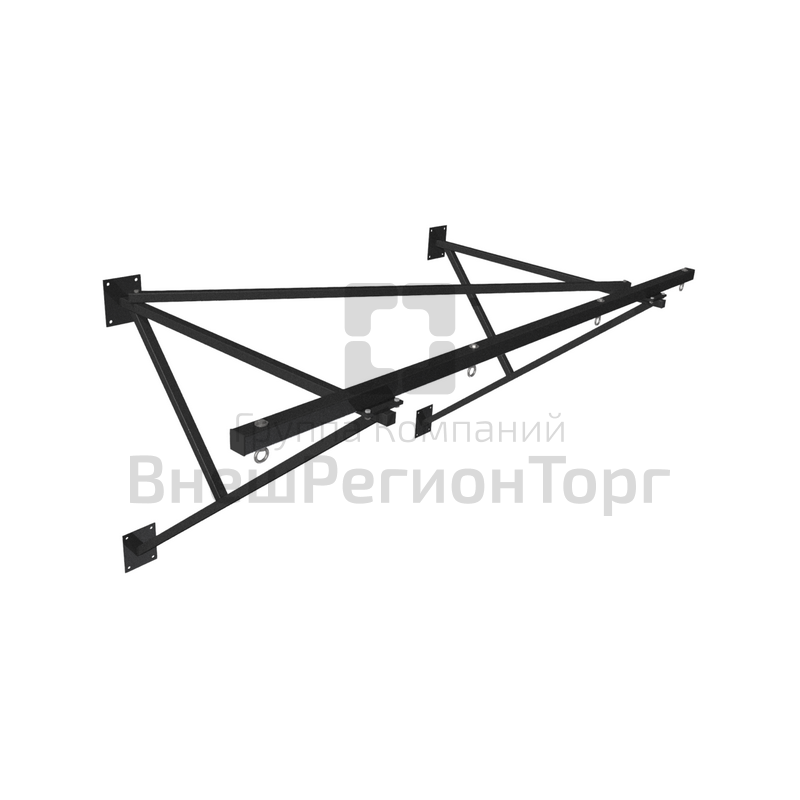 Конструкция выполнена из профильной трубы 60х60мм, 60х30мм, цельносварная. Для закрепления спортивных снарядов консоль имеет точку подвеса (винт с кольцом), вынос от стены 1500мм. Общие размеры : длина консоли 1550мм, ширина крепежной части 800мм, высота 690мм. Несущая способность конструкции консоли — 160 кг.