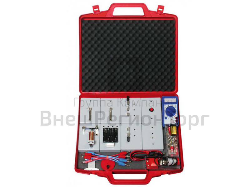 Комплект из 8 плат с основными элементами электрической цепи и аксессуаров. Предназначен для выполнения более 15 экспериментов. Детали комплекта хранятся в ячейках из пористого материала в прочном чемодане.