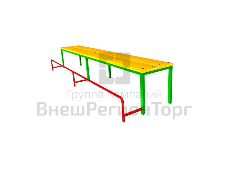 Скамья изготавливается из металлической трубы, окрашенной полимерно-порошковой краской, устойчивой к воздействию неблагоприятных погодных условий и ультрафиолета. Деревянные элементы покрыты специальной пропиткой и окрашены акриловой краской и лаком.